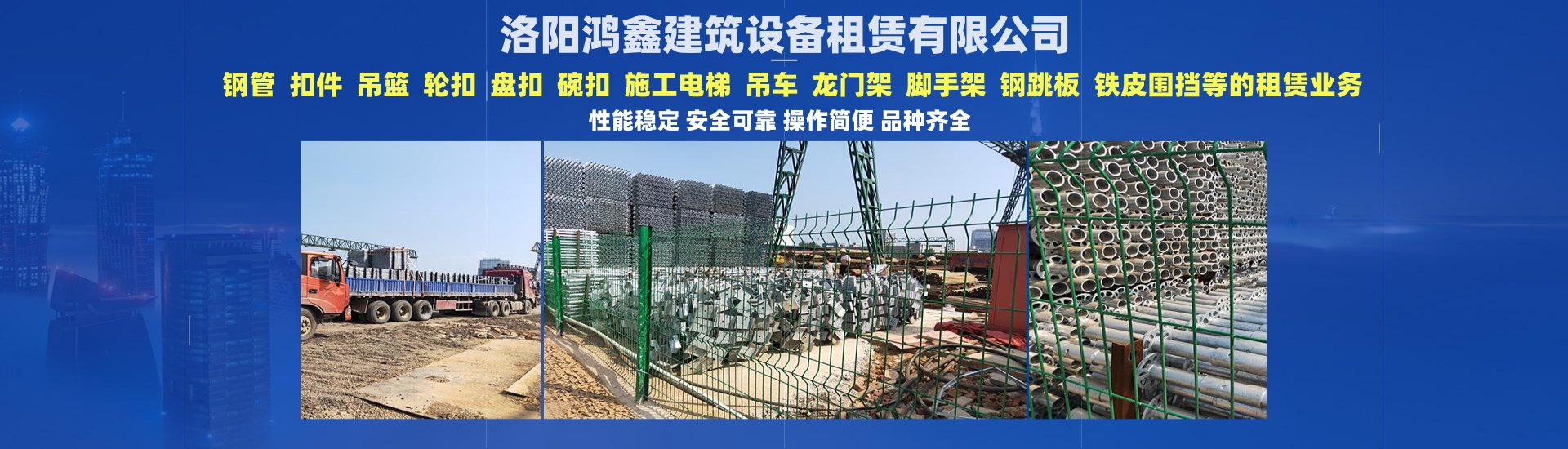 洛陽鴻鑫建筑設備租賃有限公司專業(yè)從事:鋼管.扣件. 吊籃.輪扣.盤扣.碗扣.施工電梯.吊車.龍門架.腳手架,鋼跳板、鐵皮...